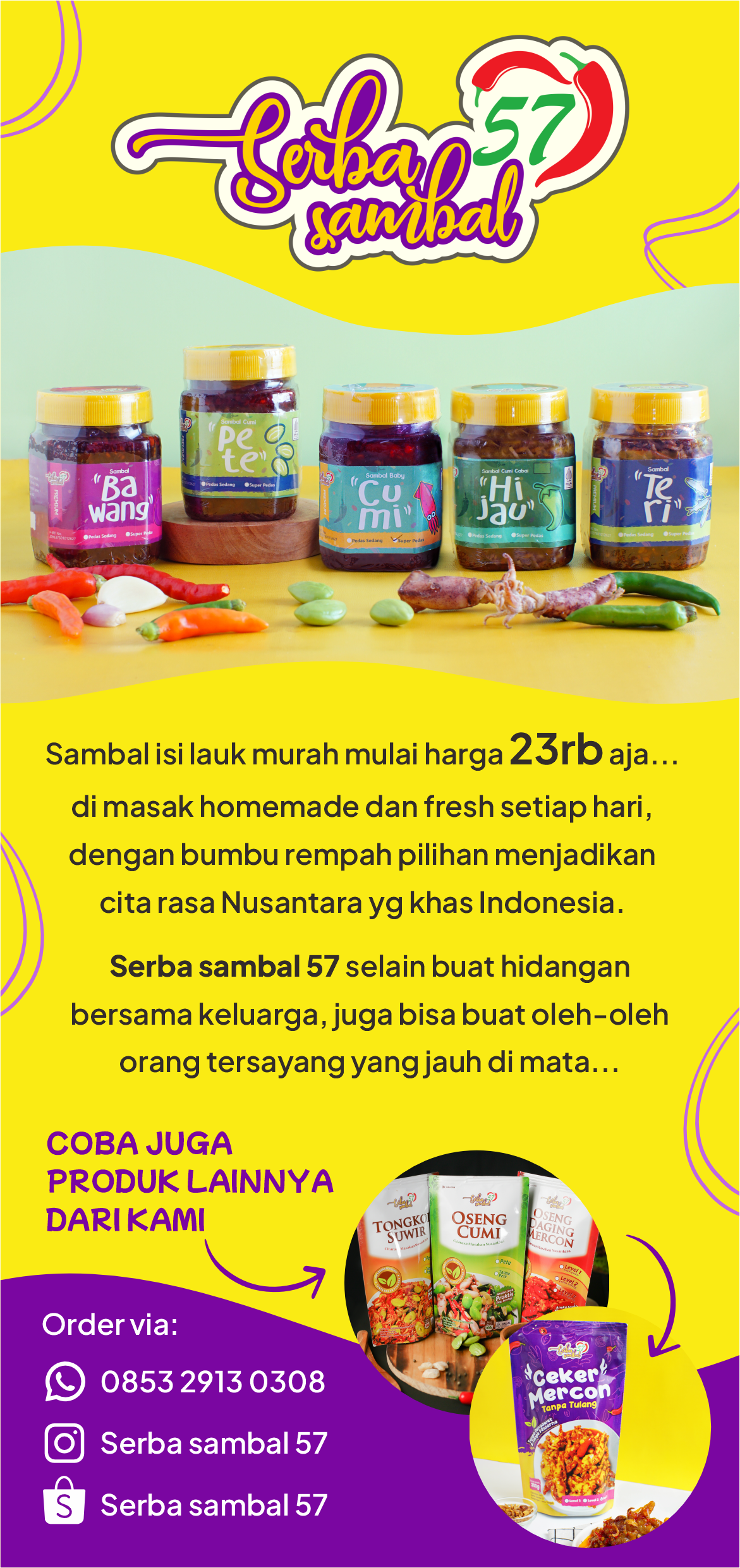 Ceritain apa yang kamu butuh lewat WhatsApp. AI dan desainer kami siap wujudkan jadi desain kece.